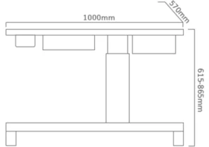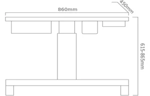 - Стіл доступний у двох варіантах стільниці — 860×450 мм (T86) та 1000×570 мм (T100), з плавним регулюванням висоти від 615 до 865 мм.